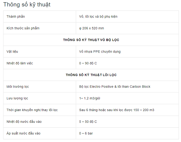 ✔️ Lớp trong (Carbon hoạt tính - Carbon block): Lõi lọc sử dụng carbon hoạt tính chất lượng cao có chức năng khử màu, mùi, loại bỏ Clo, chì và kim loại nặng... đêm lại nguồn nước trong sạch nhất cho toàn bộ nhu cầu sử dụng nước sinh hoạt trong gia đình.