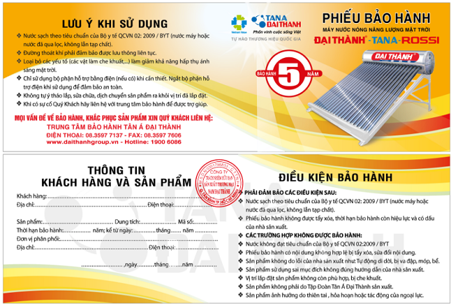 Bảo hành máy nước nóng năng lượng mặt trời Đại Thành
